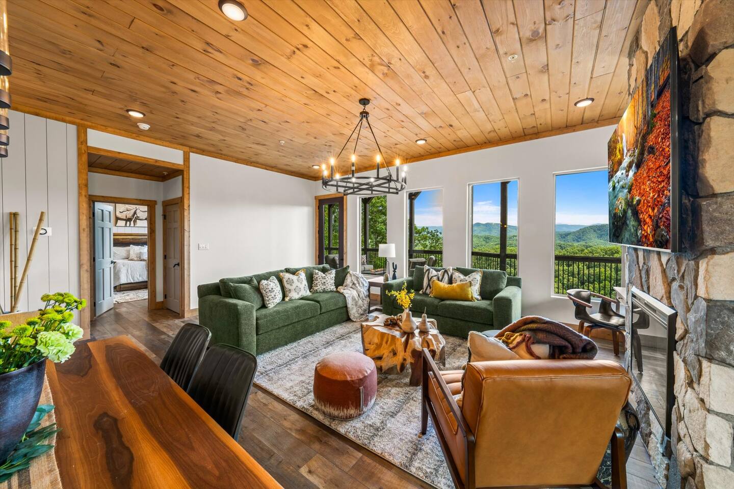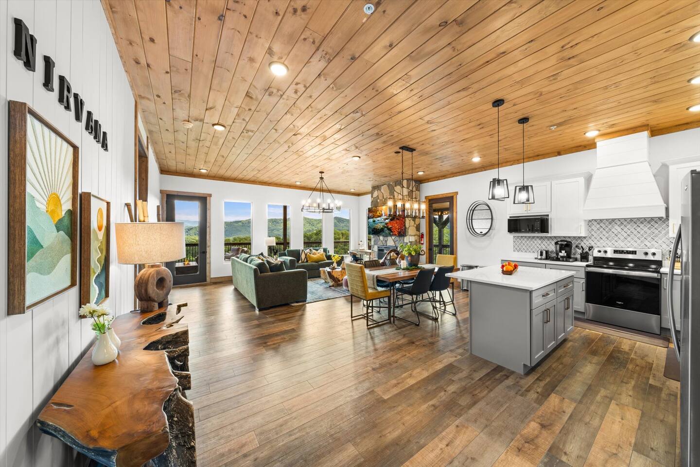 Experience Nirvana, A blend of rusticity and modernity, nestled on the peaks of Great Smoky Mountains with expansive breathtaking uninterrupted views overseeing the pristine peaks. a peaceful retreat with beautiful safe scenic roads all the way to the top of the hill. Soak in yourself in a refreshing pool or in a bubbling hot tub or step outside onto multi storied Pavilion to get mesmerized in the majestic Smoky Mountain views or Game zones *** Mountains merge, magic awaits, at Nirvana! ***